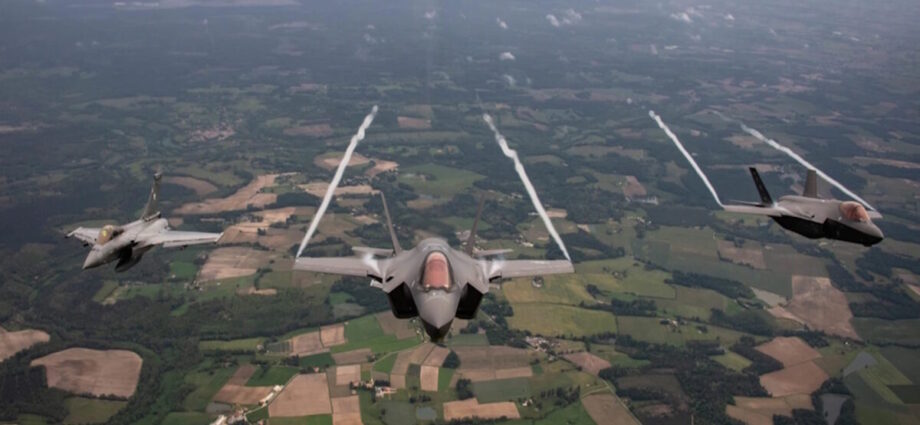 Μαχητικά αεροσκάφη F-35 και Rafale πετούν πάνω από την Γαλλία / Φωτογραφία USAF