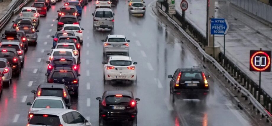 Πρωινή ταλαιπωρία για τους οδηγούς στους βασικούς άξονες της Αττικής, με αυξημένη κίνηση λόγω της βροχής και προβλημάτων σε φωτεινούς σηματοδότες.