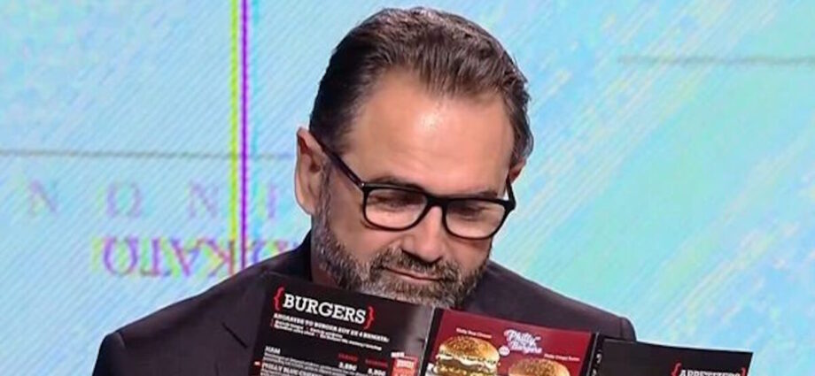Το βράδυ της Τετάρτης (01.10.2025), στην πρεμιέρα της εκπομπής «Κοινωνία Άνω Κάτω», που παρουσιάζει ο Κωνσταντίνος Μπογδάνος, ο Σταύρος Μπαλάσκας που είναι στο πάνελ, σήκωσε φυλλάδιο με μπέργκερ στον «αέρα» και μίλησε για τον Βασίλη Μπισμπίκη και την υπόθεση της Φιλοθέης.