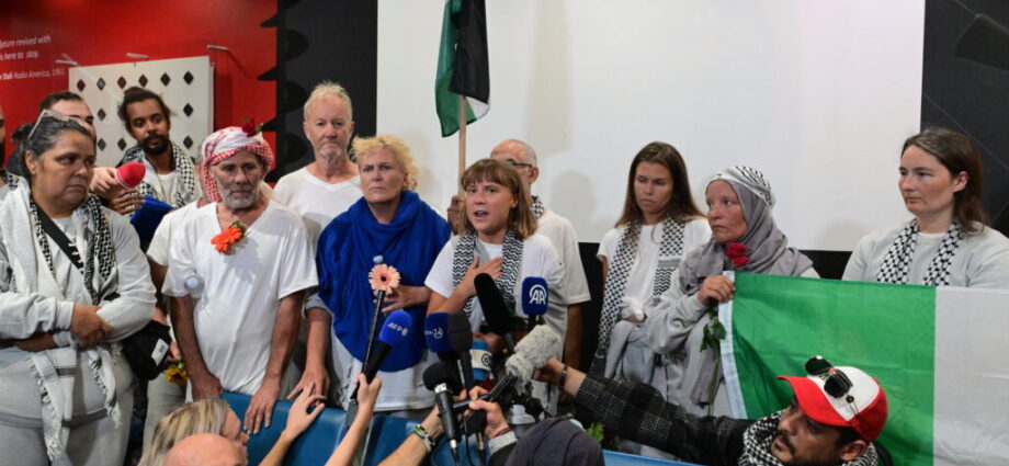 Γκρέτα Τούνμπεργκ από το «Ελ. Βενιζέλος»: Το Ισραήλ κλιμακώνει τη γενοκτονία – Συγκλονιστικές καταγγελίες και θερμή υποδοχή Ελλήνων και ξένων εθελοντών του Global Sumud Flotilla