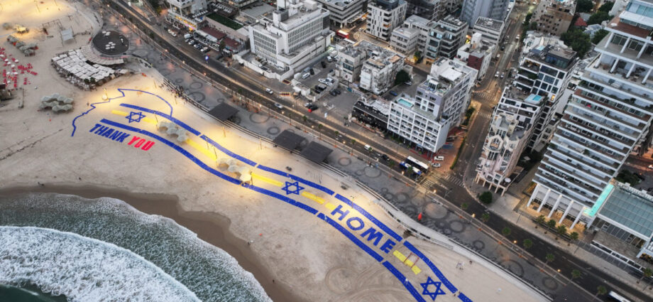 Ένα τεράστιο πανό ευγνωμοσύνης προς τον πρόεδρο των Ηνωμένων Πολιτειών, Ντόναλντ Τραμπ βρίσκεται στην παραλία του Τελ Αβίβ, σύμφωνα με πλάνα που προβλήθηκαν από ισραηλινά ΜΜΕ, κι ενώ σε εξέλιξη βρίσκεται η διαδικασία απελευθέρωσης των ομήρων της Χαμάς, με βάση τη συμφωνία εκεχειρίας Ισραήλ – Χαμάς.