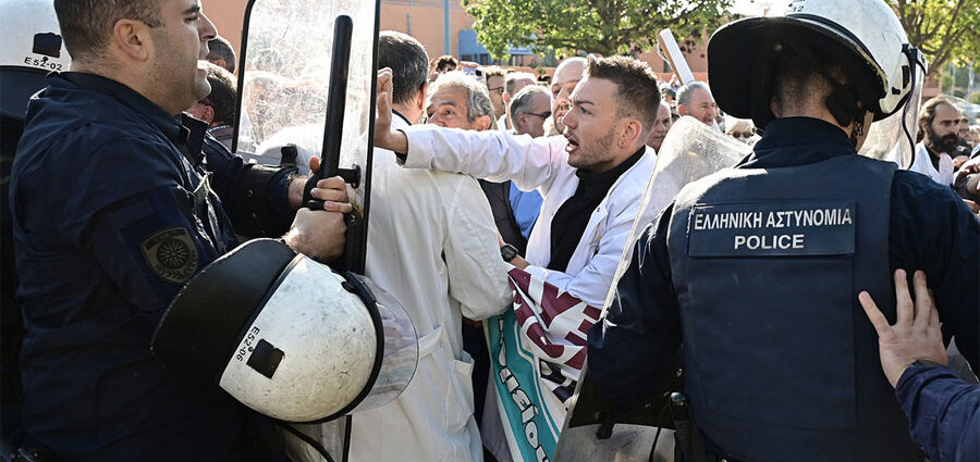 Αττικόν: Μέσα χειραψίες και χαμόγελα, έξω χημικά και ξύλο στο υγειονομικό προσωπικό