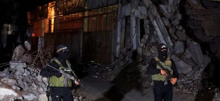 Ένοπλοι της Χαμάς επιτηρούν τη μεταφορά των σορών Ισραηλινών ομήρων που κρατούνταν στη Γάζα / REUTERS / Φωτογραφία Dawoud Abu Alkas