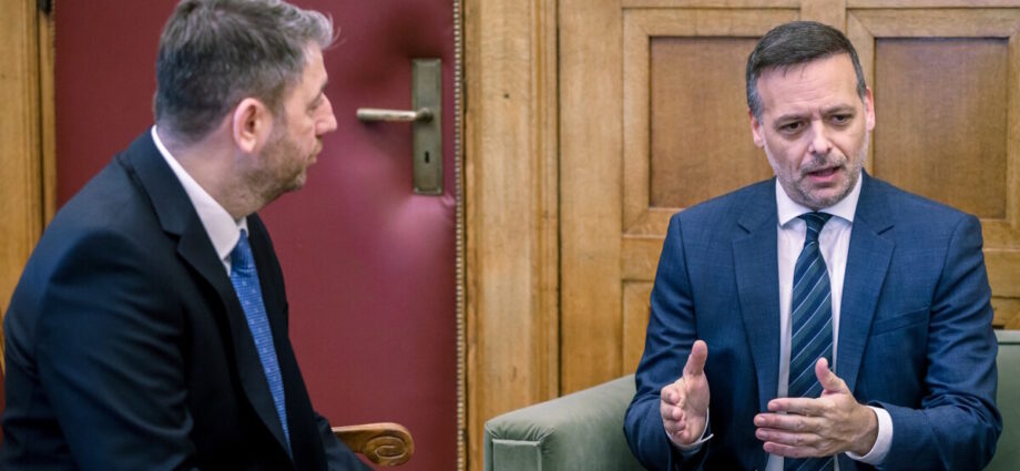 Ο πρόεδρος του ΠΑΣΟΚ, Νίκος Ανδρουλάκης και ο δήμαρχος Αθηναίων, Χάρης Δούκας / EUROKINISSI / Φωτογραφία Γιάννης Παναγόπουλος