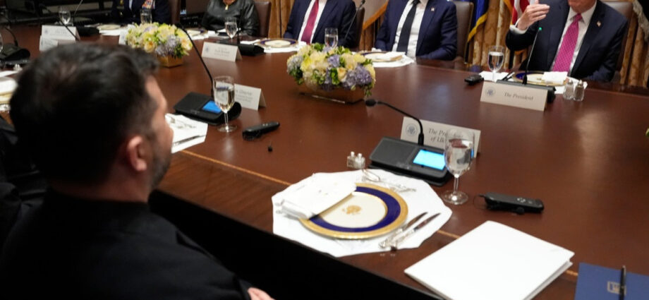 Κατά την υποδοχή του Ουκρανού προέδρου, απαντώντας σε ερώτηση δημοσιογράφου ο Ταμπ για το αν πιστεύει ότι θα μπορέσει να πείσει τον Ρώσο πρόεδρο Βλαντίμιρ Πούτιν να τερματίσει τον πόλεμο στην Ουκρανία, ο Ντόναλντ Τραμπ έγνεψε καταφατικά.