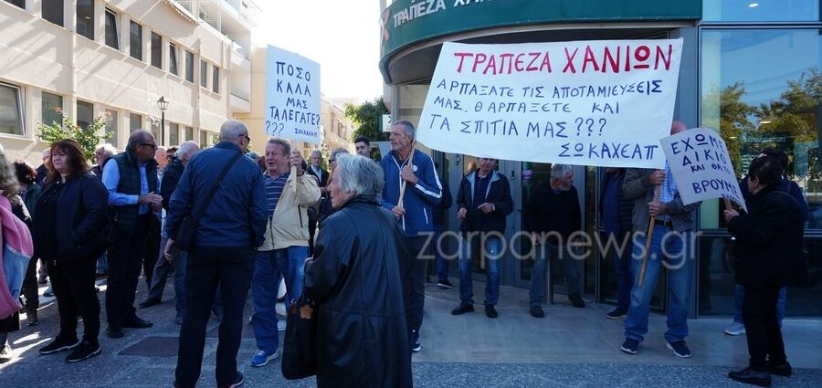 Συνεχίζουν τον αγώνα τους για δικαιοσύνη οι καταθέτες του προγράμματος «ΧΡΥΣΗ ΕΠΕΝΔΥΣΗ» και «ΑΠΟΔΙΔΩ», οι οποίοι προχώρησαν σε άλλη μια συγκέντρωση διαμαρτυρίας σήμερα το πρωί, έξω από το κέντρικό κατάστημα της Τράπεζας Χανίων, στην οδό Ελευθερίου Βενιζέλου, την ώρα που διεξάγονταν η γενική συνέλευση και οι εκλογές για το νέο ΔΣ.