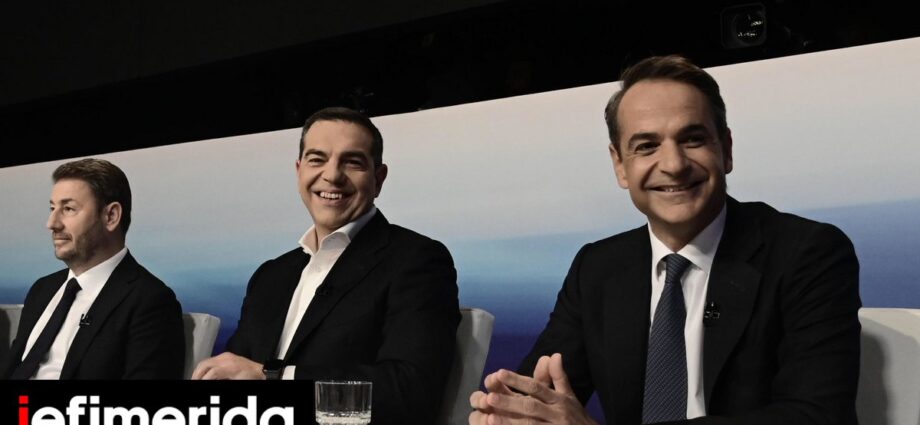 Νίκος Ανδρουλάκης, Αλέξης Τσίπρας και Κυριάκος Μητσοτάκης / Φωτογραφία: Eurokinissi