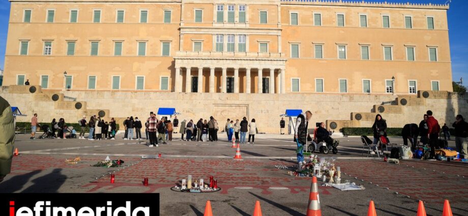 Τα ονόματα των θυμάτων από το δυστύχημα στα Τέμπη μπροστά από το μνημείο του Αγνώστου Στρατιώτη / Φωτογραφία: ΓΙΩΡΓΟΣ ΚΟΝΤΑΡΙΝΗΣ/EUROKINISSI