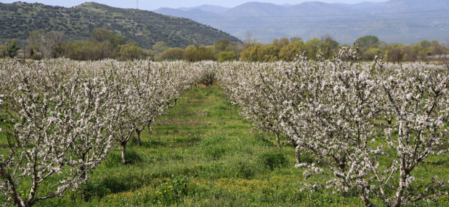 Ανανεώθηκε πριν 12 λεπτά Ανθισμένες αμυγδαλιές σε χωράφι στον θεσσαλικό κάμπο.