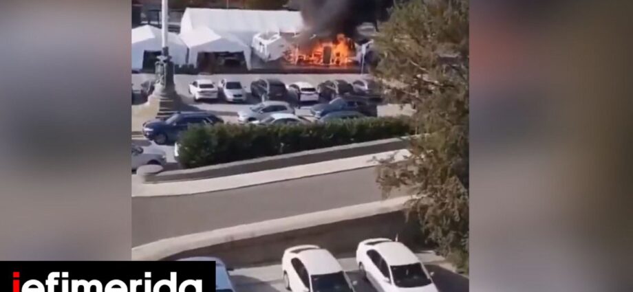 Αρχικά πυροβόλησε στον αέρα τρεις φορές και μετά έβαλε φωτιά στις σκηνές που βρίσκονται στη λεωφόρο μπροστά από το Κοινοβούλιο.