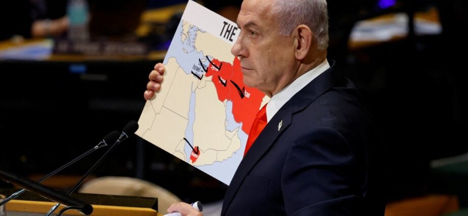 Στην επεισοδιακή ομιλία του σήμερα στη Γενική Συνέλευση των Ηνωμένων Εθνών ο Ισραηλινός πρωθυπουργός Μπενιαμίν Νετανιάχου δεσμεύτηκε να συνεχίσει τον πόλεμο του Ισραήλ εναντίον της Χαμάς στη Λωρίδα της Γάζας και είπε στους ομήρους που κρατούνται ακόμη εκεί ότι δεν έχουν ξεχαστεί.