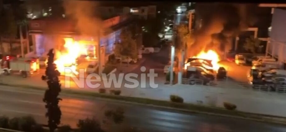 Η στιγμή που τα αυτοκίνητα τυλίγονται στις φλόγες στη Νέα Φιλαδέλφεια