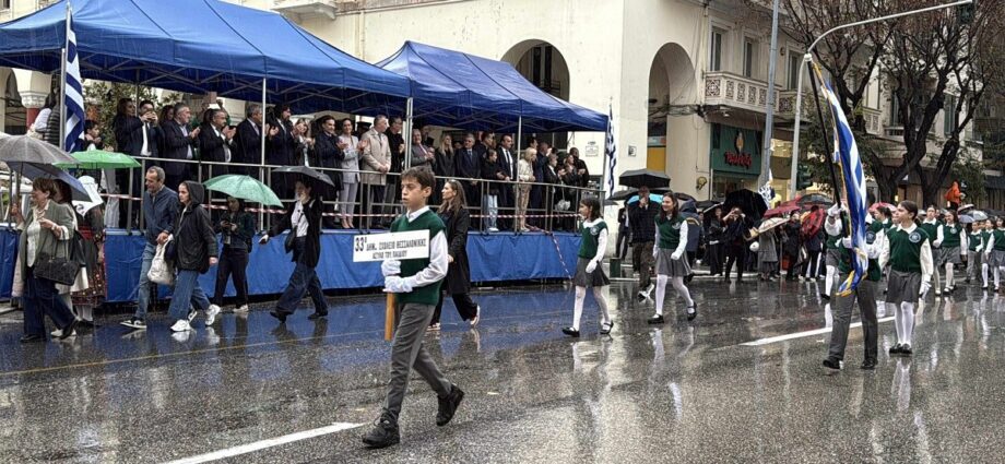 Με υπερηφάνεια και καμάρι, παρά την καταρρακτώδη βροχή, παρήλασαν σήμερα μαθήτριες και μαθητές των σχολείων της Θεσσαλονίκης για τον εορτασμό της 28ης Οκτωβρίου.