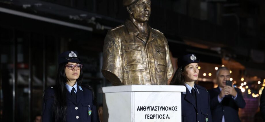 Τα αποκαλυπτήρια της προτομής του Γεωργίου Λυγγερίδη, του αστυνομικού των ΜΑΤ που έπεσε νεκρός, ύστερα από επίθεση χούλιγκαν στου Ρέντη, το Δεκέμβριο του 2023, έγιναν το απόγευμα στη Θεσσαλονίκη.