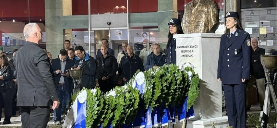 Αποκαλύφθηκε το απόγευμα της Δευτέρας η προτομή του Γιώργου Λυγγερίδη, του αστυνομικού που σκοτώθηκε εν ώρα καθήκοντος έξω από το κλειστό γήπεδο «Μελίνα Μερκούρη» στις 7 Δεκεμβρίου του 2023. Η προτομή του τοποθετήθηκε στο πάρκο Λυγγερίδη, στη συμβολή των οδών Εθνικής Αμύνης και Καμβουνίων, με πρωτοβουλία της Ένωσης Αστυνομικών Υπαλλήλων Θεσσαλονίκης (ΕΑΥΘ).
