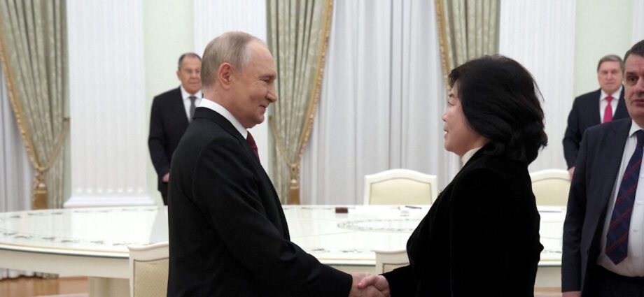 Ο Ρώσος Πρόεδρος, Vladimir Putin υποδέχεται την υπουργό Εξωτερικών της Βόρειας Κορέας, Choe Son Hui / REUTERS / Φωτογραφία Slava Prokofev
