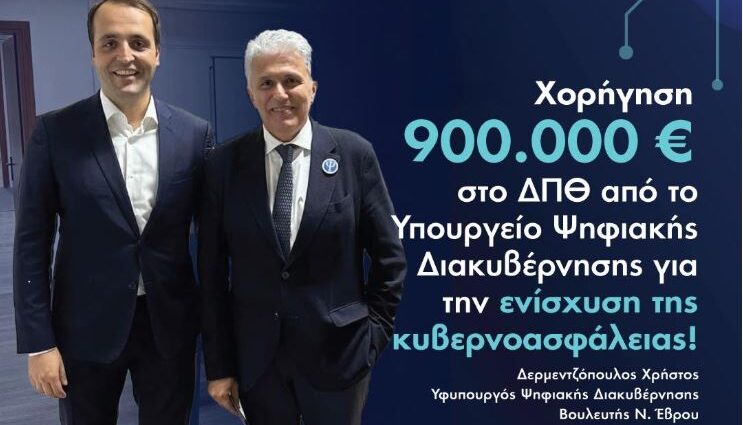 Στο πλαίσιο της στρατηγικής του Υπουργείου Ψηφιακής Διακυβέρνησης για την ενίσχυση της κυβερνοασφάλειας και της ανθεκτικότητας του Δημοσίου, εγκρίθηκε η χρηματοδότηση ύψους 900.000 ευρώ προς το Δημοκρίτειο Πανεπιστήμιο Θράκης. Η πρωτοβουλία αυτή εντάσσεται στον ευρύτερο σχεδιασμό του Υπουργείου για τη θωράκιση των ψηφιακών υποδομών του δημόσιου τομέα και την ενίσχυση της ετοιμότητας απέναντι σε κυβερνοαπειλές.