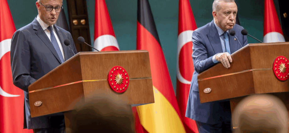 Με κανονιοβολισμούς και έφιππο άγημα υποδέχτηκε στο προεδρικό μέγαρο στην ‘Αγκυρα τον Γερμανό καγκελάριο Φρίντριχ Μερτς ο Ρετζέπ Ταγίπ Ερντογάν στη συνέντευξη τύπου των δύο ηγετών ωστόσο έπεσαν κανονιές με αιχμή τον πόλεμο στη Γάζα, αλλά και την ένταξη της Τουρκίας στην Ε.Ε.