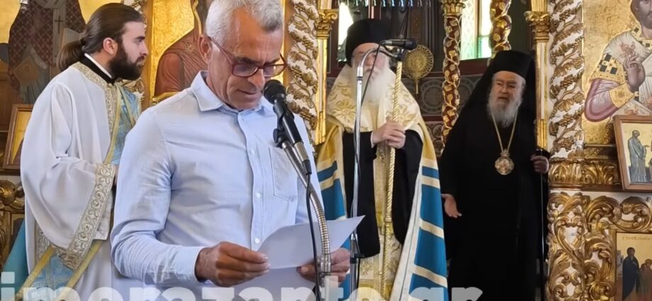 Ο δάσκαλος άρχισε να εκφωνεί τον λόγο του όταν ξαφνικά εμφανίστηκε ο Μητροπολίτης Δωδώνης, Χρυσόστομος, και άρχισε να φωνάζει: «Με τα πουκάμισα έξω ήρθες να βγάλεις λόγο; Με τα πουκάμισα έξω; Απαράδεκτο, αίσχος!».