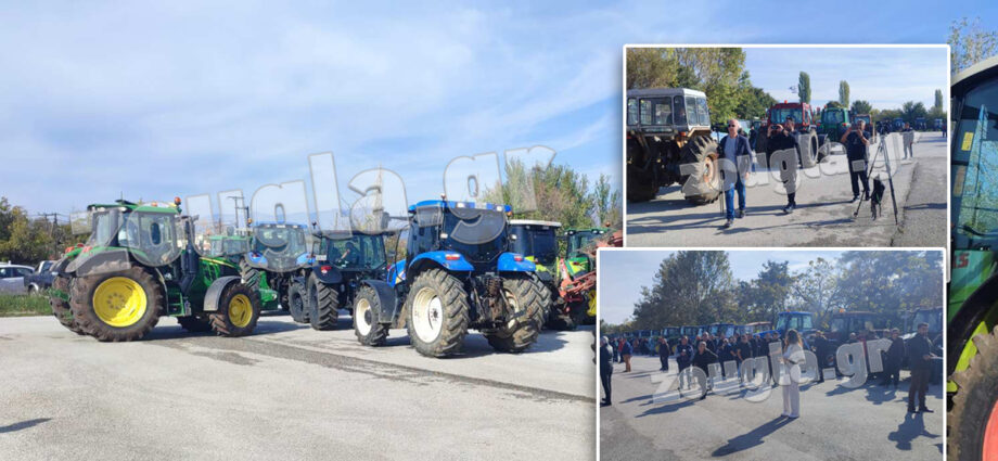 Τρακτέρ παραταγμένα έξω από τα γραφεία του ΟΠΕΚΕΠΕ στην Κομοτηνή