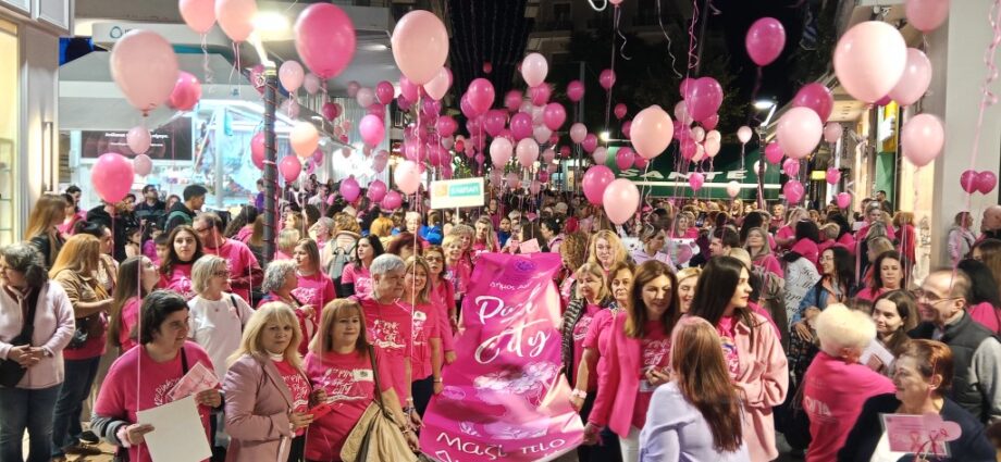 Οι συμμετέχοντες, φορώντας ροζ μπλουζάκια και κρατώντας συμβολικά ροζ μπαλόνια, περπάτησαν στους… Πηγή