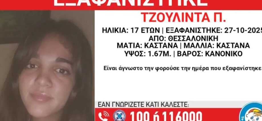Συναγερμός στη Θεσσαλονίκη για την εξαφάνιση της Τζουλίντα Π., 17 ετών. Σχετική ανακοίνωση εξέδωσε το «Χαμόγελο του Παιδιού», το απόγευμα του Σαββάτου (01.11.2025).