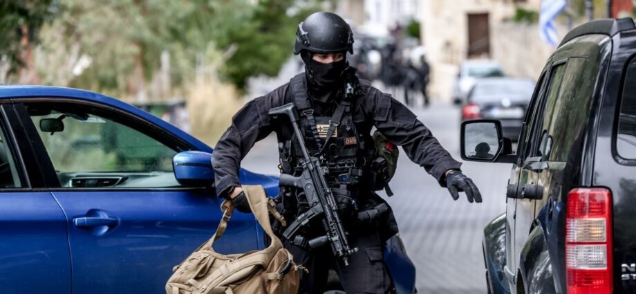 Πάνοπλος αστυνομικός στα Βορίζια μετά το μακελειό / ΣΤΕΦΑΝΟΣ ΡΑΠΑΝΗΣ / EUROKINISSI