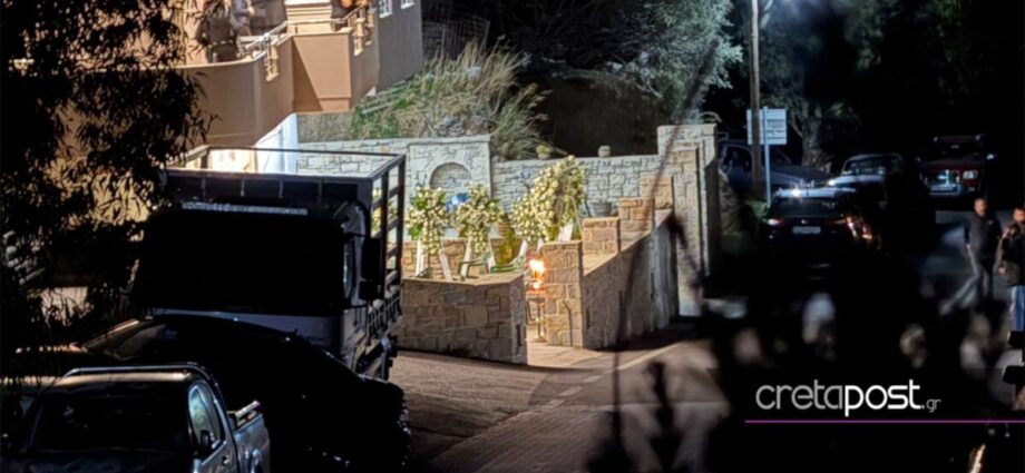 Το σπίτι του 39χρονου θύματος γεμάτο στεφάνια μετά τη μεταφορά της σορού / cretapost.gr