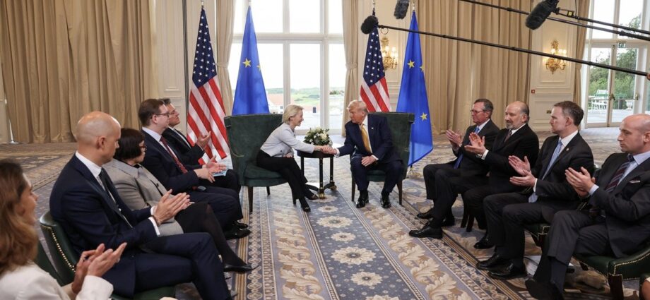 Σε συμφωνία για τους δασμούς κατέληξαν σε μια ιστορική στιγμή, ο Ντόναλντ Τραμπ και η Ούσρουλα φον ντερ Λάιεν στη Σκωτία.