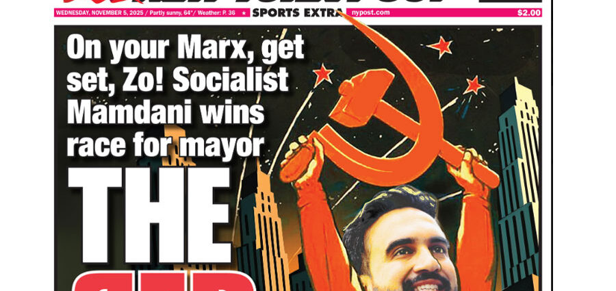 Tomorrow’s cover: Zohran Mamdani wins 2025 NYC mayoral election https://t.co/HwAuNmCFtL pic.twitter.com/nshFKpcvLE— New York Post (@nypost) November 5, 2025