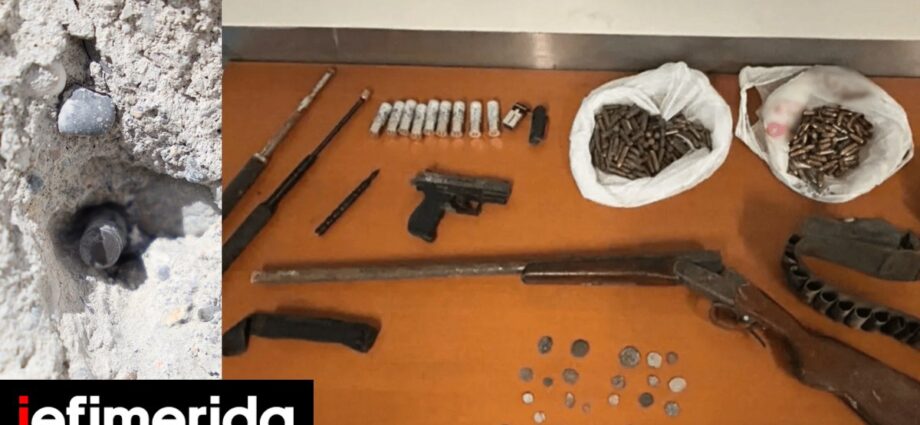 Ο εν λόγω άνδρας συνελήφθη καθώς οι αστυνομικοί εντόπισαν σε σπηλιά -λίγο έξω από τα Βορίζια-, που είναι σε δικό του χώρο, μια κυνηγετική καραμπίνα, κυνηγετικά φυσίγγια και πολλά φυσίγγια των 9 mm για πιστόλια. Μάλιστα, η είσοδος της σπηλιάς ήταν κλεισμένη με πέτρες και ξύλα, διαδικασία που φαίνεται να ήταν πρόσφατη.