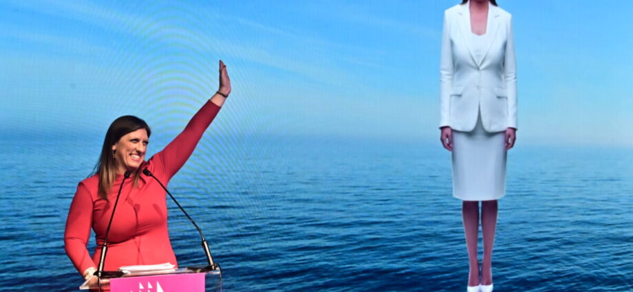 Καθώς η πρόεδρος του κόμματος παρουσίαζε τους άξονες του προγράμματος για μια σειρά από τομείς, πίσω της σε ένα τεράστιο video wall, με τη βοήθεια της τεχνητής νοημοσύνης, εμφανιζόταν η ίδια ντυμένη ανάλογα με το θέμα. Η Ζωή Κωνσταντοπούλου ως πυροσβέστης, καπετάνιος, δικαστής, μάνα σε παιδική χαρά, αγρότισσα, κ.ά.