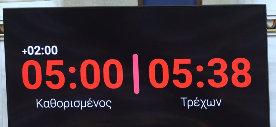 Αριστερά ο χρόνος ομιλίας και δεξιά η υπέρβαση του χρόνου στη Βουλή / (ΓΙΑΝΝΗΣ ΠΑΝΑΓΟΠΟΥΛΟΣ/EUROKINISSI)