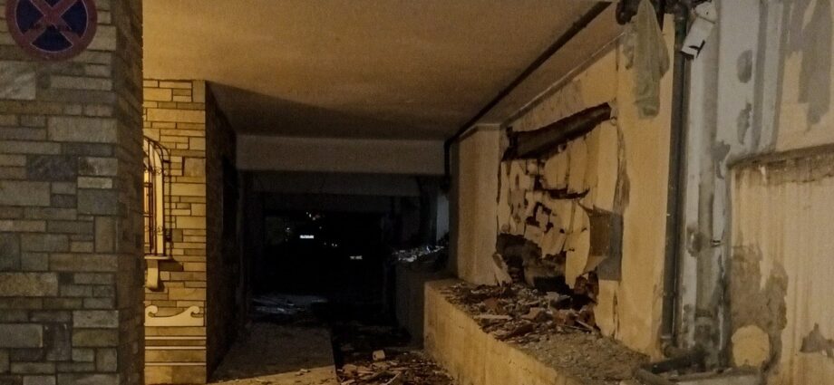 Σπασμένα τζάμια, μάρμαρα, πλακάκια, ξύλα, πεσμένα στο έδαφος, με τις ζημιές να επεκτείνονται σε διαμερίσματα γύρω από την πολυκατοικία, επαγγελματικούς χώρους και αυτοκίνητα.