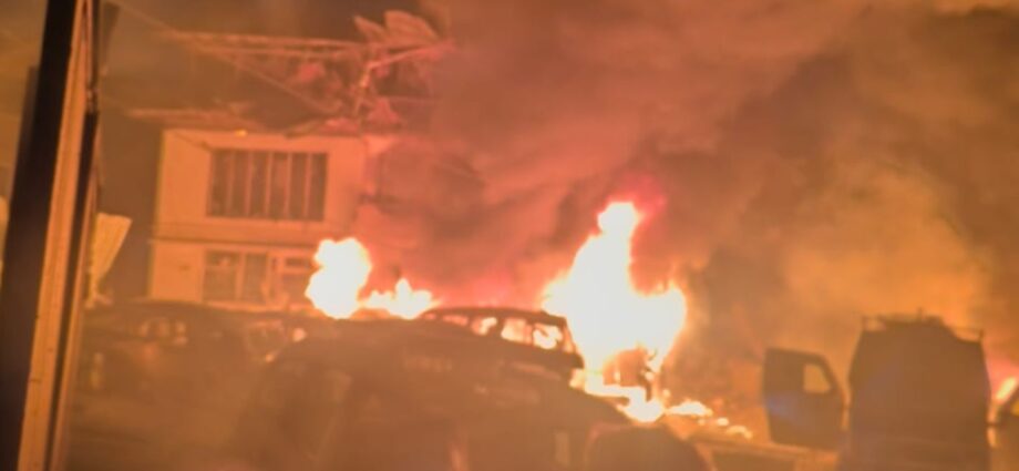 Σύμφωνα με τοπικό αξιωματούχο της αστυνομίας, μετά την έκρηξη προκλήθηκε πυρκαγιά, με το κτήριο να τυλίγεται στις φλόγες. Στο σημείο έσπευσαν πυροσβεστικά οχήματα για την κατάσβεσή της. Παράλληλα, οι αρχές εκφράζουν φόβους ότι θα υπάρχουν θύματα.