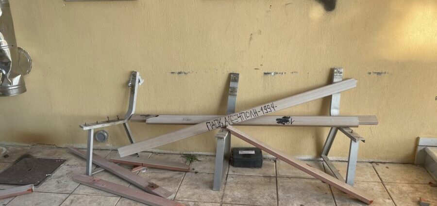 Άγνωστοι εισέβαλαν στην αυλή του σχολείου, κατέστρεψαν παγκάκι και γέμισαν τους τοίχους με συνθήματα, αφήνοντας πίσω τους εικόνες που —όπως τονίζουν γονείς και δημοτικές αρχές— δεν συνάδουν με χώρο που ανήκει σε μικρά παιδιά.