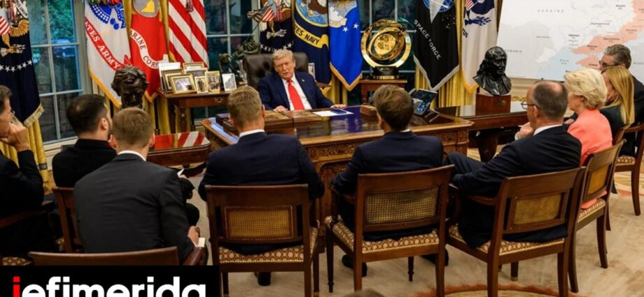 Ο πρόεδρος των ΗΠΑ Ντόναλντ Τραμπ με Ευρωπαίους ηγέτες στον Λευκό Οίκο τον περασμένο Αύγουστο / Φωτογραφία αρχείου: AP