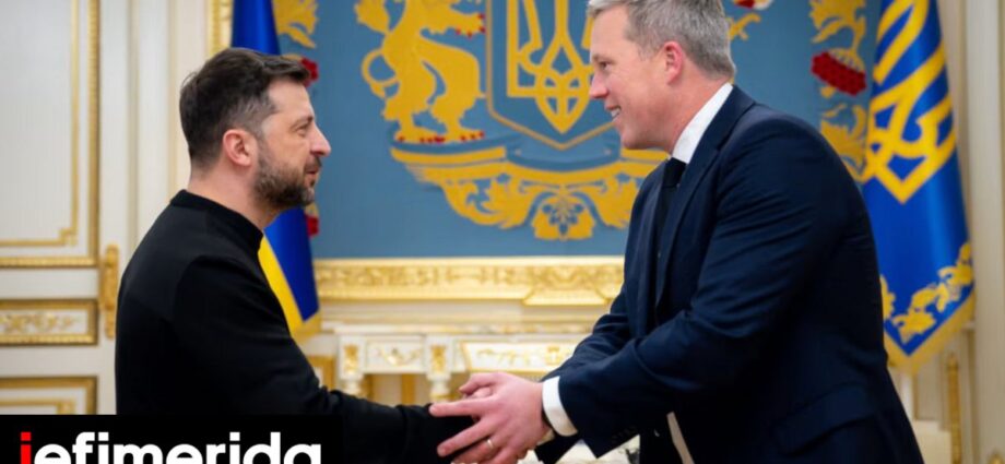 Ο πρόεδρος της Ουκρανίας, Βολόντιμιρ Ζελένσκι με τον Αμερικανό υπουργό Στρατού Νταν Ντρίσκολ /.Φωτογραφία: Ukrainian Presidential Press Office/AP