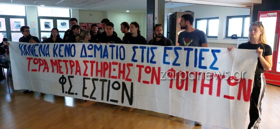 Σε κινητοποιήσεις προχωρούν φοιτητές του Πολυτεχνείου Κρήτης που διαμαρτύρονται για την απόφαση της Συγκλήτου – επικαλούμενη οικονομικά και ακαδημαϊκά κριτήρια- να βγάλει από τις Εστίες 18 φοιτητές την ώρα που υπάρχουν 50 κενές θέσεις. Το μεσημέρι ήταν προγραμματισμένη η κινητοποίηση των φοιτητικών συλλόγων Εστιών και ΜΗΧΟΠ στο Πολυτεχνείο, ζητώντας λύσεις από την Σύγκλητο, αφού χθες έληξε η διωρία για να παραδώσουν τα δωμάτιά τους.