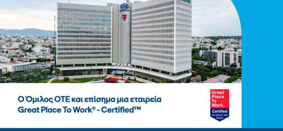 Ο Όμιλος ΟΤΕ έλαβε την πιστοποίηση Great Place To Work®, μια σημαντική τιμητική διάκριση που αναγνωρίζει την κουλτούρα του εργασιακού περιβάλλοντος. Η πιστοποίηση είναι αποτέλεσμα της ανεξάρτητης και ανώνυμης έρευνας του Great Place To Work Hellas, παγκόσμιου ηγέτη στην κουλτούρα του χώρου εργασίας, στην οποία συμμετείχαν οι εργαζόμενοι του Ομίλου. Η συγκεκριμένη τιμητική διάκριση επιβεβαιώνει τη σταθερή δέσμευση του Ομίλου στη δημιουργία ενός σύγχρονου, συμπεριληπτικού και υψηλών προδιαγραφών περιβάλλοντος εργασίας, που προάγει την ανάπτυξη και την ευημερία των ανθρώπων του.