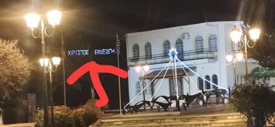 Γκάφα στα Γιαννιτσά: Αντί για χριστουγεννιάτικα λαμπάκια άναψαν πινακίδα… «Χριστός Ανέστη»