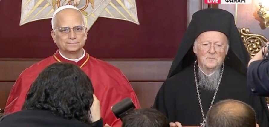 Εκτυλίσσονται ιστορικές στιγμές αυτές τις ώρες στο Φανάρι, καθώς οι δύο προκαθήμενοι της Χριστιανοσύνης, ο Πάπας Λέων ο ΙΔ’ και ο Οικουμενικός Πατριάρχης Βαρθολομαίος χοροστάτησαν στη Δοξολογία στον πατριαρχικό ναό του Αγίου Γεωργίου, στο Φανάρι.