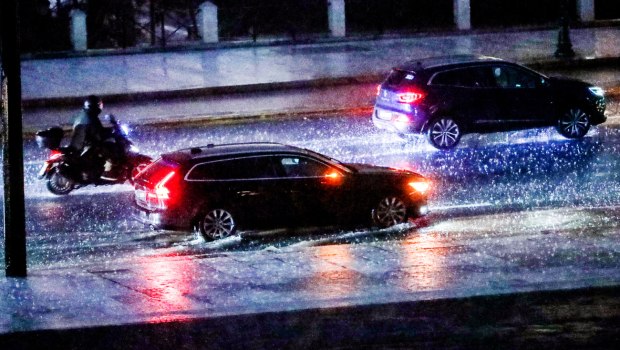 Ισχυρές βροχές και καταιγίδες σημειώνονται σε πολλές περιοχές του Λεκανοπεδίου, με τους δρόμους σε αρκετά σημεία να έχουν μετατραπεί σε ποτάμια: