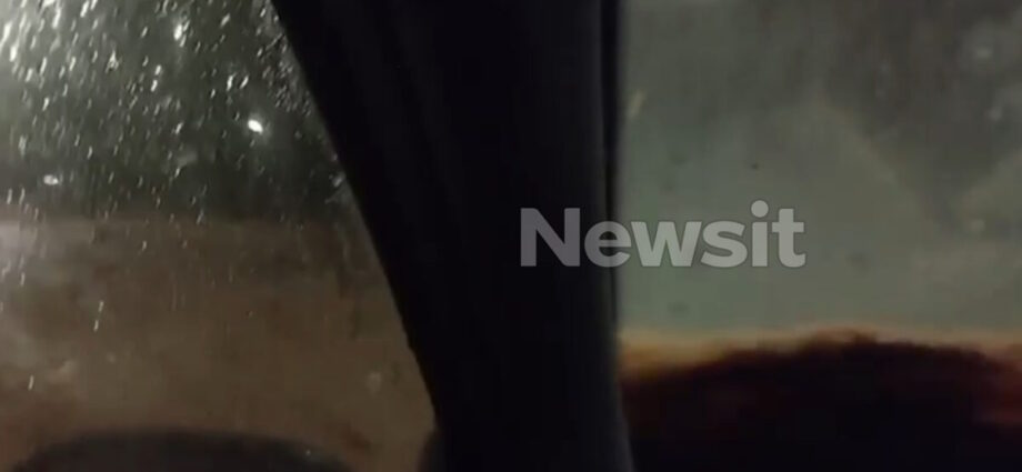 Οι εικόνες που θα δείτε είναι συγκλονιστικές, ενώ ο πατέρας των δύο παιδιών περιμένει ανήμπορος στη θέση του οδηγού να περάσουν τα ορμητικά νερά.