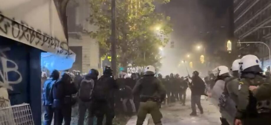 Λίγο μετά τις 8 το βράδυ του Σαββάτου, επεισόδια σημειώθηκαν στην πορεία στο κέντρο της Αθήνας, για τη μνήμη του Αλέξανδρου Γρηγορόπουλου, που δολοφονήθηκε στα Εξάρχεια.