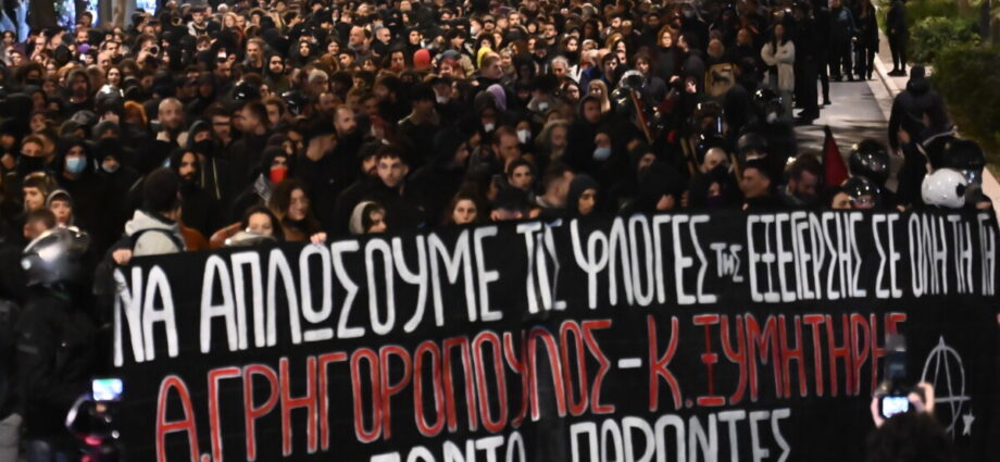 «Κανένας Δεκέμβρης δεν τελείωσε ποτέ» φωνάζουν οι διαδηλωτές.