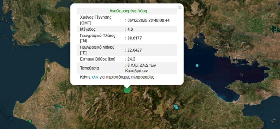 Σεισμός 4,6 βαθμών της κλίμακας Ρίχτερ σημειώθηκε το βράδυ του Σαββάτου (6/12) στα Καλάβρυτα.