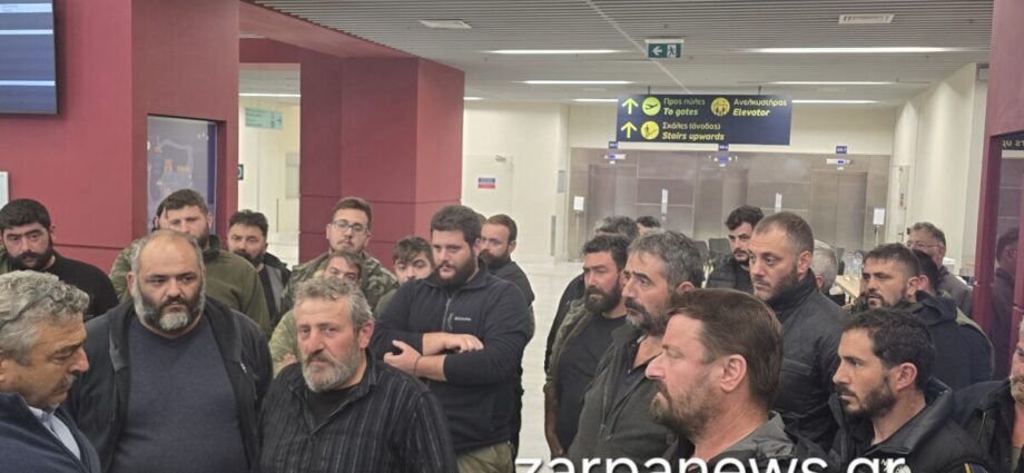 Στο αεροδρόμιο Χανίων έφτασε λίγο πριν τις 4 το μεσημέρι ο Αντιπεριφερειάρχης Νίκος Καλογερής για να συναντήσει τους κτηνοτρόφους που παραμένουν στον χώρο εν αναμονή αποφάσεων.