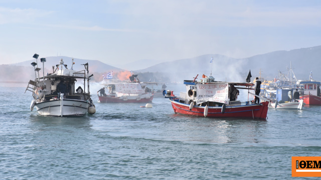 Αγρότες και κτηνοτρόφοι απέκλεισαν το λιμάνι του Βόλου από τη στεριά, ενώ ψαράδες το μπλόκαραν μέσω θαλάσσης ως ένδειξη συμπαράστασης.