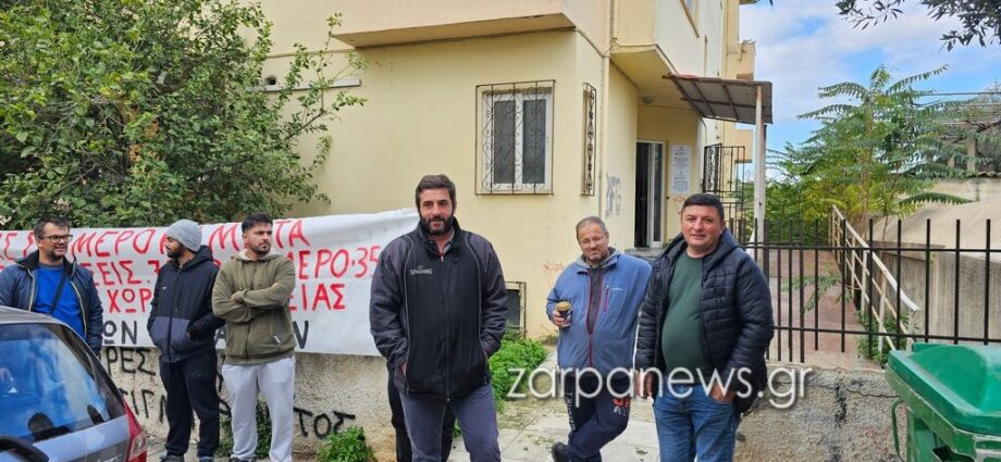 Στα Χανιά, οι οικοδόμοι πραγματοποίησαν συγκέντρωση διαμαρτυρίας στα γραφεία της Επιθεώρησης Εργασίας στις 10.00 το πρωί.